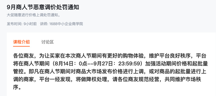 1、大促期間不能修改價格和起批,因爲會有降權的風險