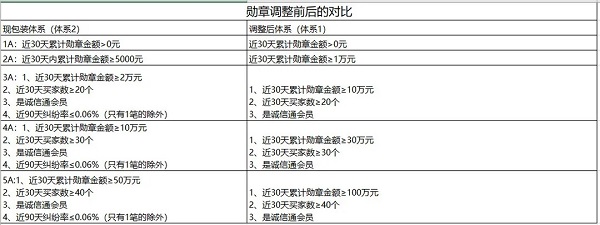 變化一:原有包裝交易勳章(zhāng)爲交易勳章(zhāng)體(tǐ)系二,調整後會升級到交易勳章(zhāng)體(tǐ)系一
