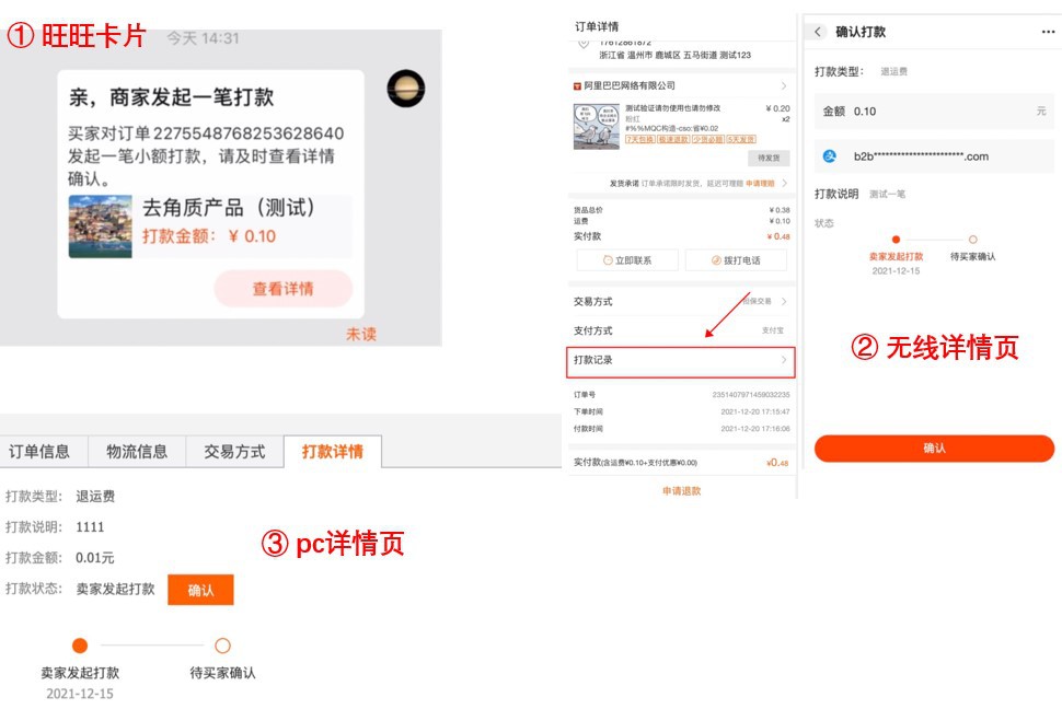 不需要買家退款就(jiù)能解決退差價/補運費/體(tǐ)驗補償等問(wèn)題!提升商家服務指标的同時提升買家的售後體(tǐ)驗。大家期待已久的小額打款工具來(lái)喽~Tips:小額打款目前隻支持實力商家和超級工廠(chǎng)的商家開通使用,在逐步開放(fàng)中~~一、如(rú)何開通小額打款功能開通路(lù)徑:賣家pc登陸後,點擊交易->常用工具(或者退貨退款管理) ->小額打款,點擊開通, 需要完成金額設置并開通小額打款功能,開通時需要輸入支付寶密碼,用于同意支付寶代扣協議(yì)。開通後也可(kě)以在頁面得(de)右上角,對小額打款準備金賬戶進行充值,可(kě)以重新設置小額打款金額上限,可(kě)以發起打款二、如(rú)何操作小額打款pc 版操作入口: 在交易常用工具的小額打款頁面,點擊右上角點擊發起打款,輸入訂單号,點擊搜索,針對單筆訂單發起打款金額注:① 僅支持已支付且交易未完成的訂單操作小額打款② 代銷分(fēn)賬、賬期支付、誠e賒等訂單不支持小額打款③ 每筆訂單隻支持打款一次 ,不允許發起第二次小額打款④ 單筆打款金額不能超過實付現金的50% (比如(rú)訂單金額100元,其中現金支付90 紅(hóng)包支付10 ,單筆最高支持小額打款45元)⑤ 系統對工具的筆數和金額做了上限設置: 單日(rì)筆數上限1000筆,單日(rì)金額上限10000元,單筆訂單金額上限10000元,商家設置不能超過系統上限。2.訂單詳情頁支持發起小額打款在訂單詳情頁面,點擊到"打款詳情"的标簽,可(kě)以發起小額打款。3.無線訂單列表發起小額打款在無線的訂單列表,可(kě)以找到小額打款的按鈕入口,點擊可(kě)以發起小額打款注:隻要符合條件(jiàn)的訂單才會透出小額打款的入口4.千牛訂單列表支持小額打款注:隻要符合小額打款條件(jiàn)的訂單才會透出小額打款的按鈕商家發起打款後買家怎麽确認收到打款?買家有2個方法确認1)買家會收到旺旺聊天的卡片提醒,提示商家發起了一筆打款 ;點擊查看打款詳情頁點擊确認。2)買家在pc/無線 端,找到這筆訂單,點擊訂單詳情進去(qù),打款詳情下也可(kě)以點擊确認打款。注:打款發起後給買家3天确認時間,超期打款自動關閉三、 如(rú)何關閉小額打款功能操作路(lù)徑:pc 交易 ————小額打款 ; 右上角設置小額打款,點擊功能關閉四 、小額打款工具使用相(xiàng)關FAQQ1. 發起小額打款,會影響商家新燈塔的評價指标嗎(ma) ?A : 小額打款就(jiù)是爲了買賣雙方快速處理退差價、降價等情況的服務工具,通過小額打款的訂單,不會記錄到新燈塔的退款、投訴等指标,不影響服務評分(fēn),大家趕緊用起來(lái)吧(ba)~Q2. 我是主賬号,怎麽授權給子賬号小額打款的能力 ?A. 主賬号授權子賬号的功能還(hái)在優化中,預計(jì)1月中心上線,盡情期待 。注:子賬号單筆打款上限是1000元Q3. 爲什麽我看不到小額打款功能?A. 目前該功能隻針對實力商家和超級工廠(chǎng)的商家開放(fàng),正在逐步開放(fàng)給所有商家,盡情期待~Q4. 訂單已經給買家打款了,最後買家又發起了退款,我要怎麽識别是否有給買家打過款 ?A: 系統會在退款詳情頁提醒訂單是否存在小額打款 。商家可(kě)根據打款的金額自行判斷買家退款金額的合理性。買家發起退款頁面也會提示買家存在一筆小額打款Q5. 賬号下打款的賬單明細要去(qù)哪裡看?A : 賬單明細暫時還(hái)沒有,預計(jì)1月中旬上線,會在小額打款功能 打款記錄邊上增加,賬單功能 ,盡情期待!小額支付寶賬單明細會備注:小額打款,商家也可(kě)以通過支付寶賬單明細去(qù)識别小額打款的支出Q6. 發起打款後,商家怎麽知道買家是否有确認打款 ?A : 商家可(kě)查看打款詳情,詳情會展示打款的進展