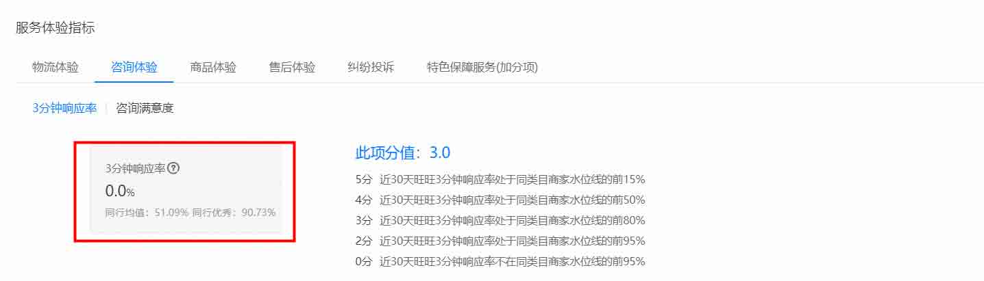 點此進入新燈塔後台2688-賣家工作台點擊【咨詢體(tǐ)驗】闆塊查詢自己的3分(fēn)鍾響應率。