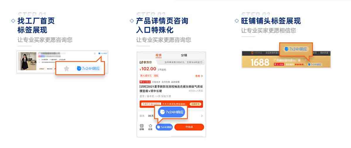 2、推薦開通7x24H響應服務,快速提升響應,平台商機提醒,助力詢盤成交,獲取平台權益